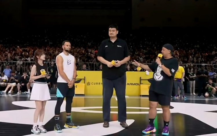 8月20日讯 库里品牌中国行继续进行,姚明现身活动现场。