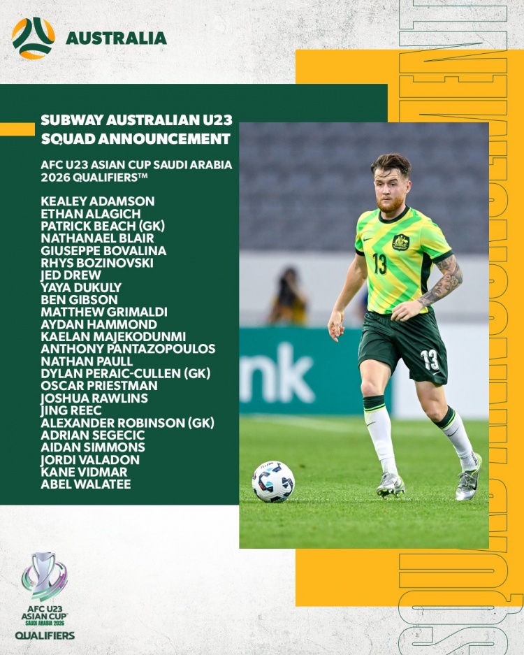 包括奇尔卡蒂、马修斯、博斯等曾入选澳大利亚国家队的球员同样缺席。更令人意外的是,刚加盟美职联夏洛特FC、有“锋线金童”之称的阿奇-古德温,以及曾参加卡塔尔世界杯、现效力于英超纽卡斯尔U21队的前锋加朗-库尔也未进入名单。